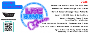 Doors open at 6:45 p.m. and Smoky B Barbecue will be at the show. BYOB – no glass, please.